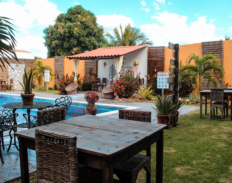 A área de lazer do Hotel Virgulino é o lugar perfeito para relaxar e aproveitar momentos de diversão. Com um ambiente acolhedor e espaços cuidadosamente planejados, nossa área oferece uma piscina cristalina ideal para um mergulho refrescante, além de um jardim encantador que proporciona um contato direto com a natureza. O espaço foi projetado para atender a todas as idades, com comodidades que garantem o seu conforto e bem-estar. Aproveite para relaxar ao redor da piscina, ou curtir um refrescante drink no ambiente ao ar livre. Venha desfrutar de um momento de lazer completo em nosso hotel, onde cada detalhe foi pensado para oferecer uma experiência única e agradável!